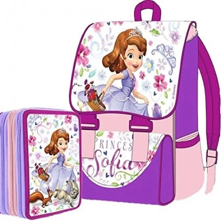 Kit Scuola Zaino Estensibile + Astuccio 3 Zip Sofia La Principessa