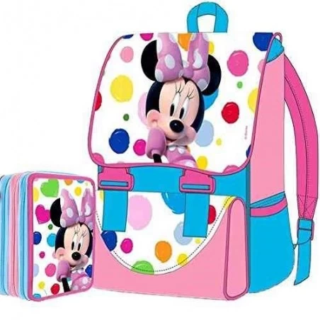 Kit Scuola Zaino Estensibile + Astuccio 3 Zip Minnie